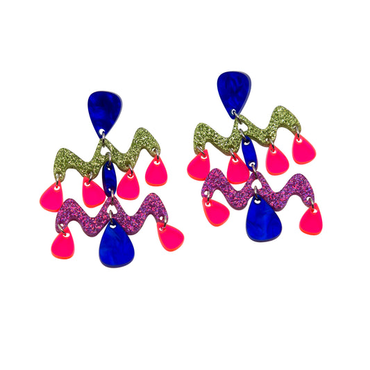 HARRIET NO.3 // BLUE MARBLE, GREEN & PINK GLITTER, FLURO PINK
