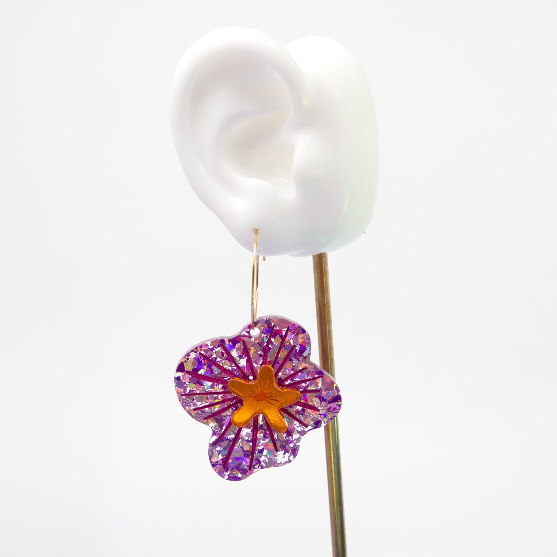 Light weight, statement acrylic earrings, on gold plated hypoallergenic hoop.