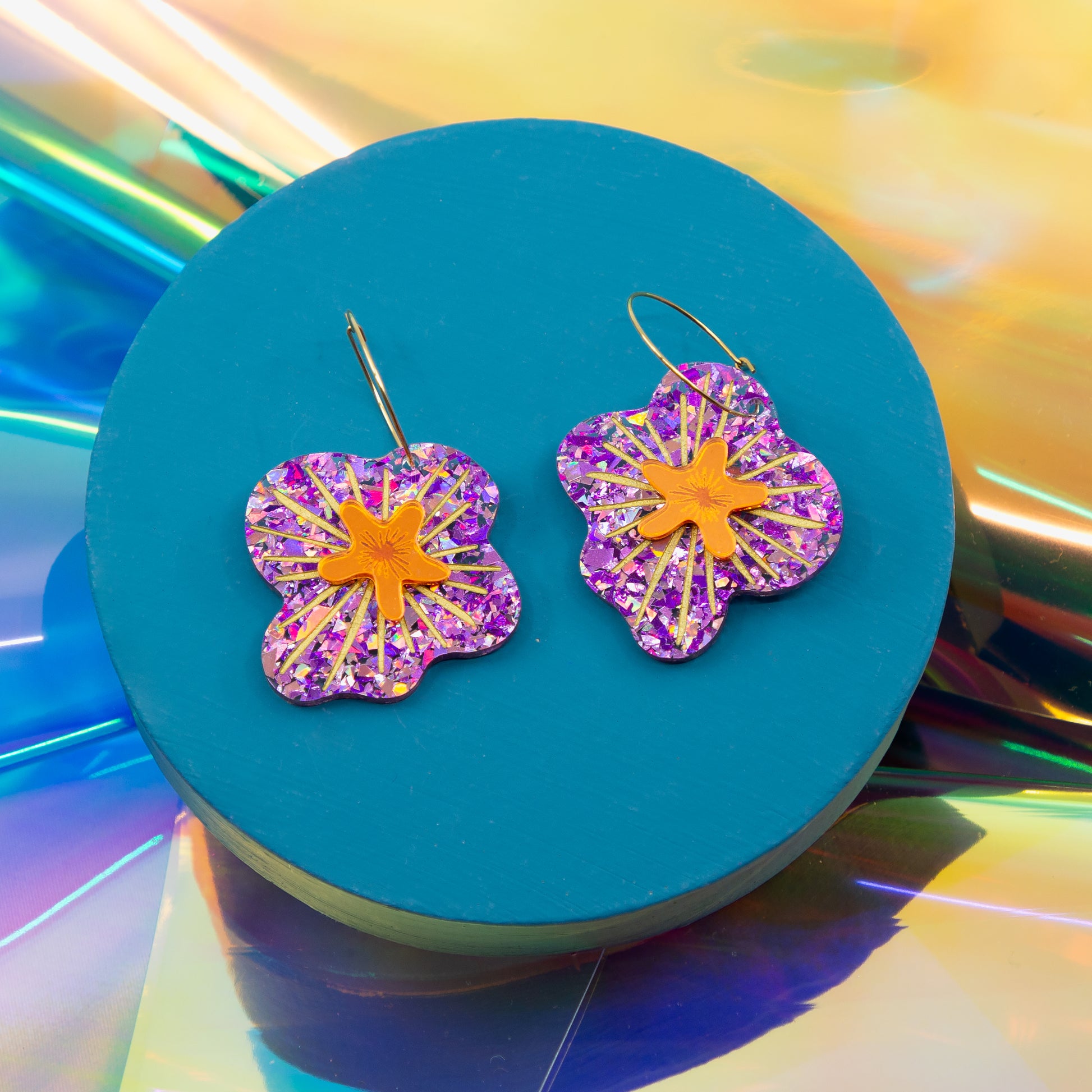 Light weight, statement acrylic earrings, on gold plated hypoallergenic hoop.