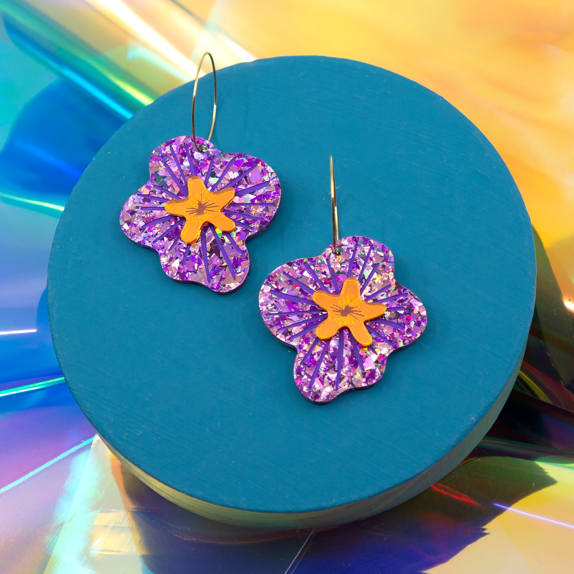 Light weight, statement acrylic earrings, on gold plated hypoallergenic hoop.