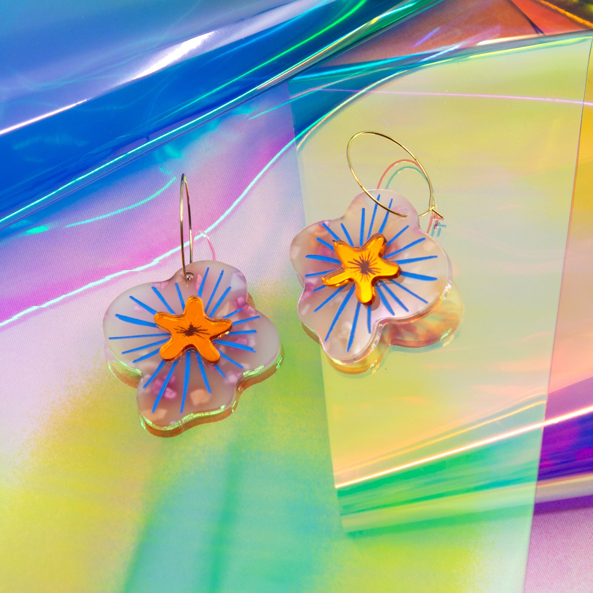 Light weight, statement acrylic earrings, on gold plated hypoallergenic hoop.