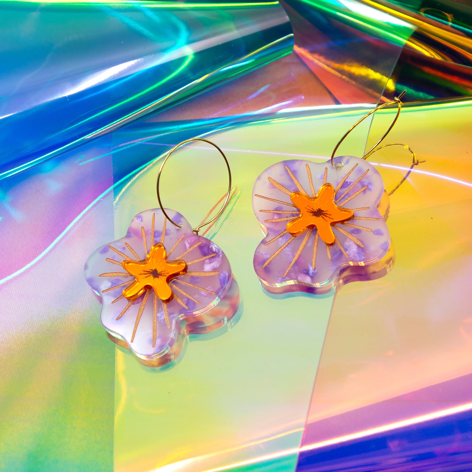 Light weight, statement acrylic earrings, on gold plated hypoallergenic hoop.