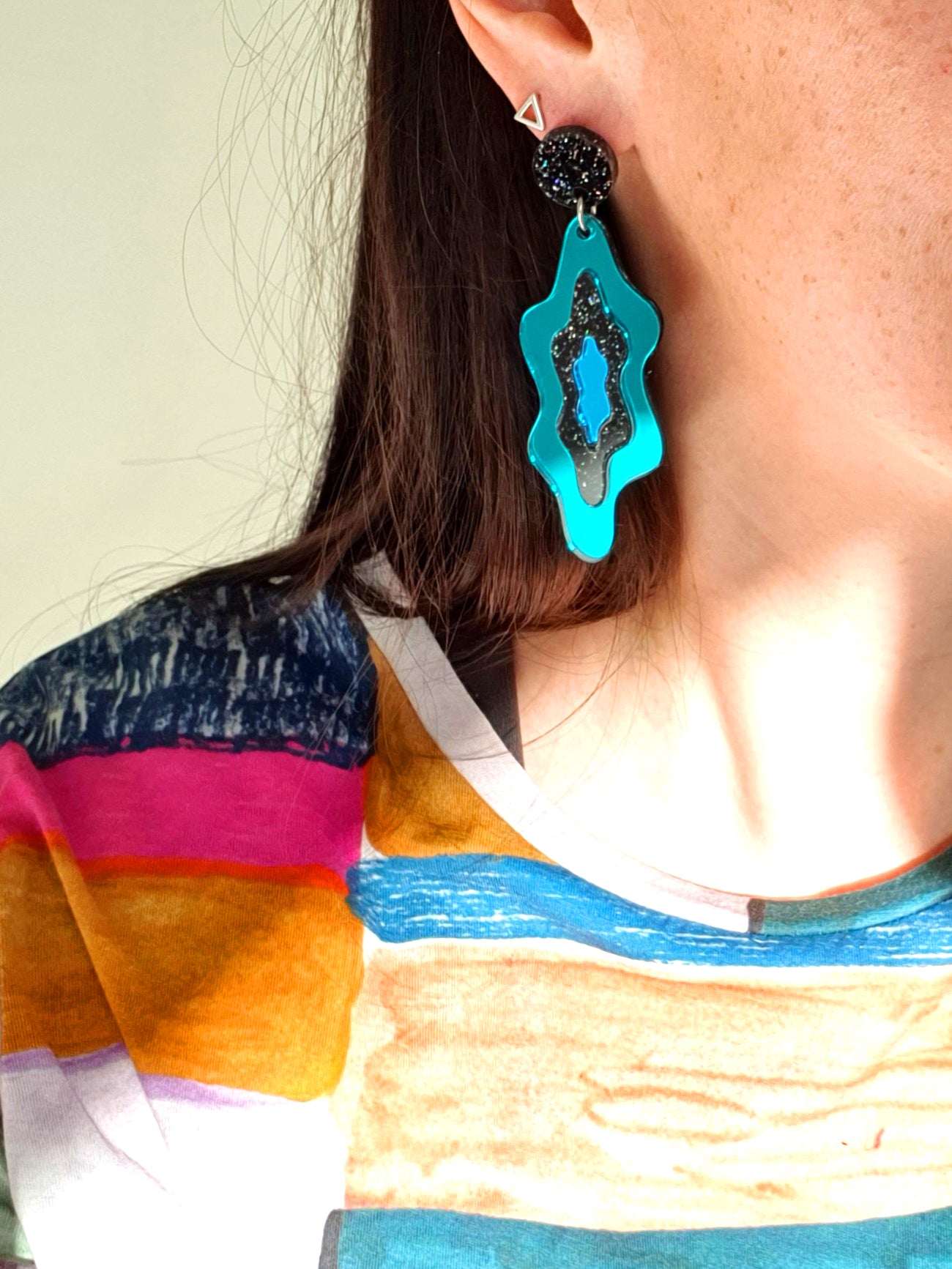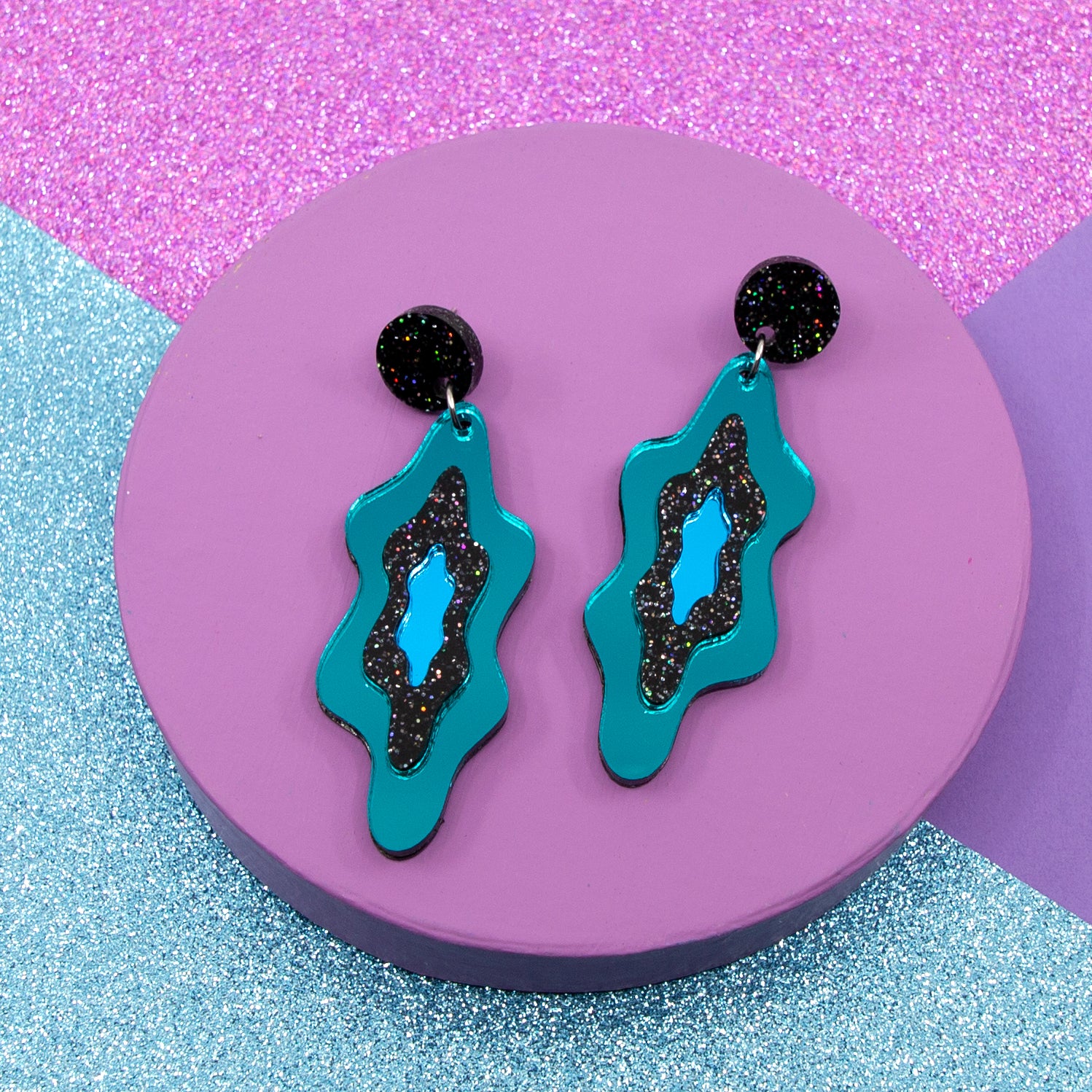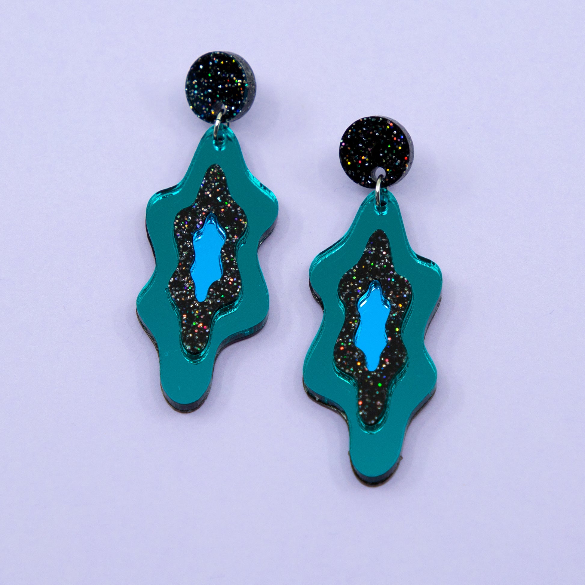 LELLIE MELTS // TEAL MIRROR & BLACK GLITTER STUD