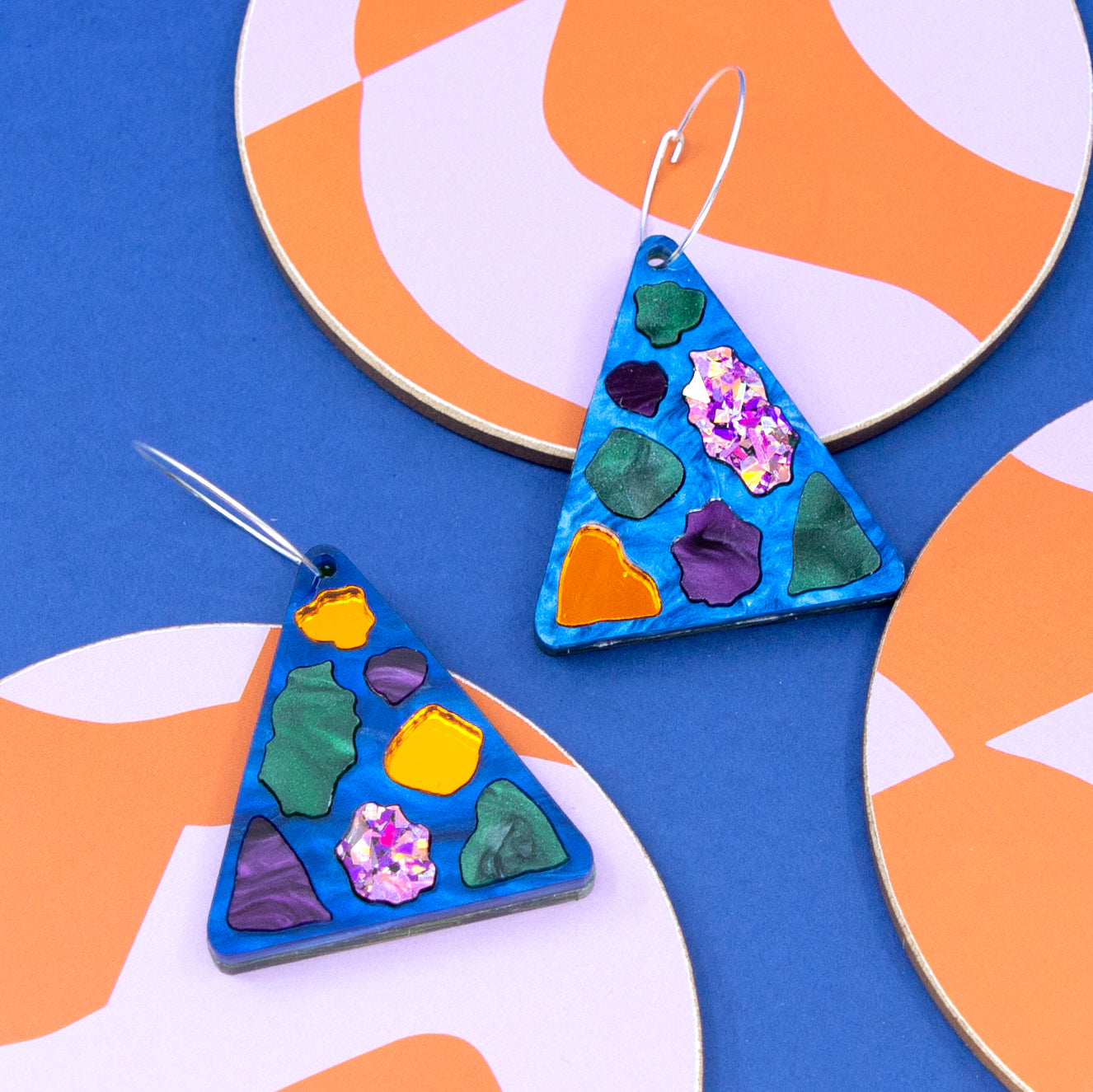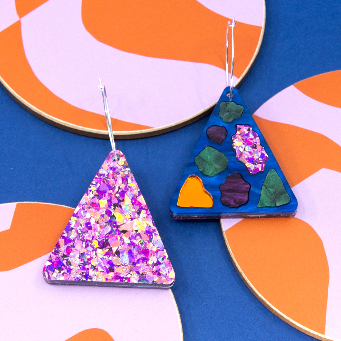 Reversible hoop style - blue marble terrazzo/pink confetti